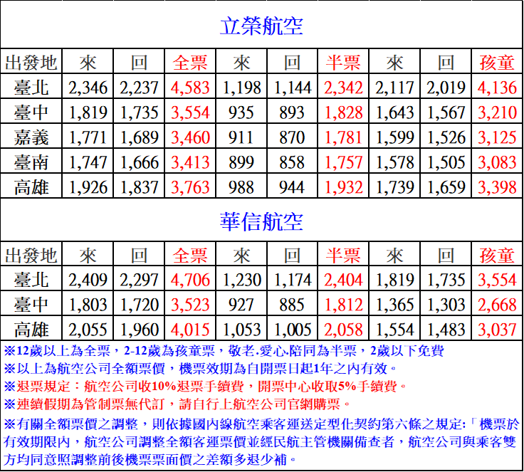 立榮航空改票新規範:2025年11月17日起,更改行程第一次改票免收費,自第二次改票起,每次改票皆收取購買票價之10%手續費。