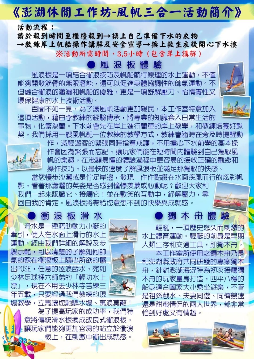 2.本活動不適合高低血壓、心臟病、氣喘、孕婦等其他不適合水上活動之病例者參加,參加前請了解並自行考量。