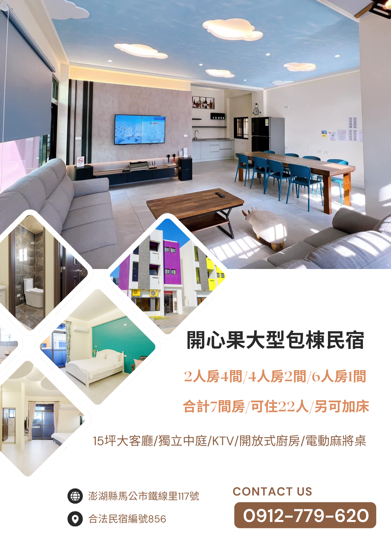 ※以上價格需連續入住兩晚(含)以上適用。 ※此價格已是優惠價,無續住優惠。 ※三日以上連假,不適用上述價格。 ※入住為下午15:00後,退房為早上11:00前。 ※如需加床每晚500/床(含早餐)。 ※室內全面禁菸,請至陽台或戶外,經發現賠償每晚房價。 ※晚上22:00後,請勿於室外大聲喧嘩,以維護社區安寧。 ※民宿附近有BBQ吃到飽店家,提供代訂服務。 ※提供碼頭.機場來回免費接送服務(需搭配租車)。 ※個人貴重物品請隨身攜帶並妥善保管,如遺失恕不負責。 |